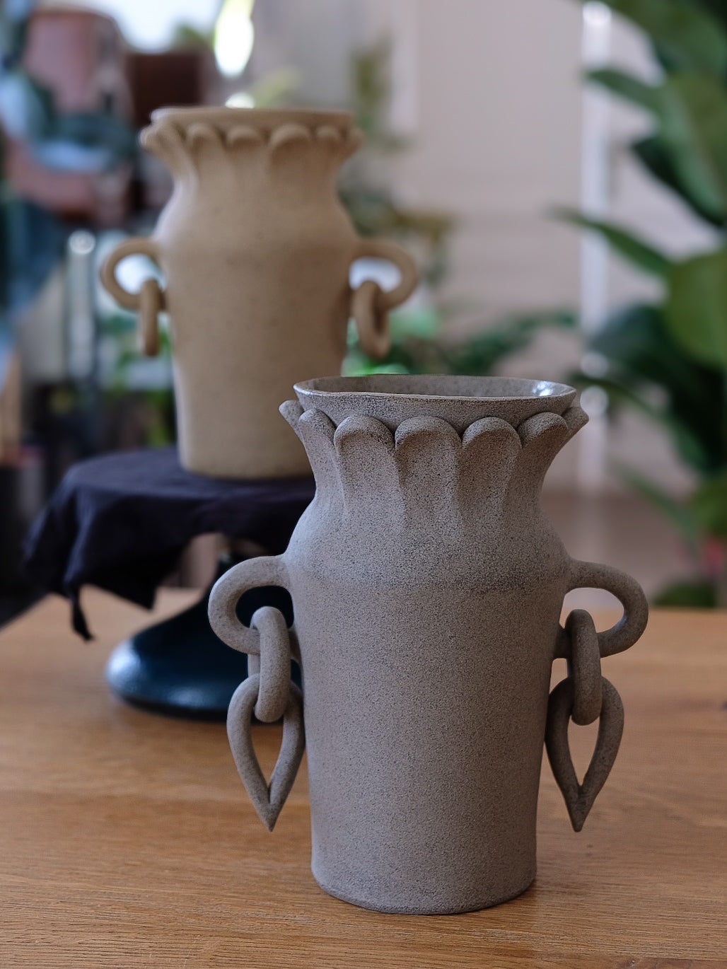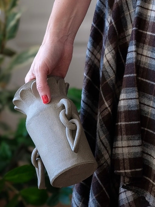 Vsi izdelki so v celoti ročno izdelani, kar pomeni, da bodo med posameznimi izdelki manjše razlike in da so nepravilnosti na površini ali barvi sestavni del edinstvenosti vsakega kosa.